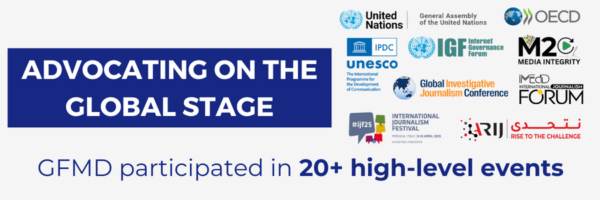 Throughout 2025, GFMD represented independent media and media development across major global and regional platforms, including WSIS+20, UNESCO World Press Freedom Day, the Internet Governance Forum (IGF), the International Journalism Festival (IJF), iMEdD, Splice Beta, the Global Investigative Journalism Conference (GIJC), the 18th ARIJ Forum, and M20.