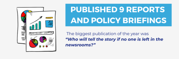 9 policy briefings published in 2025. The biggest publication of the year was Who will tell the story if no one is left in the newsrooms? We also published two new media funding mapping reports: